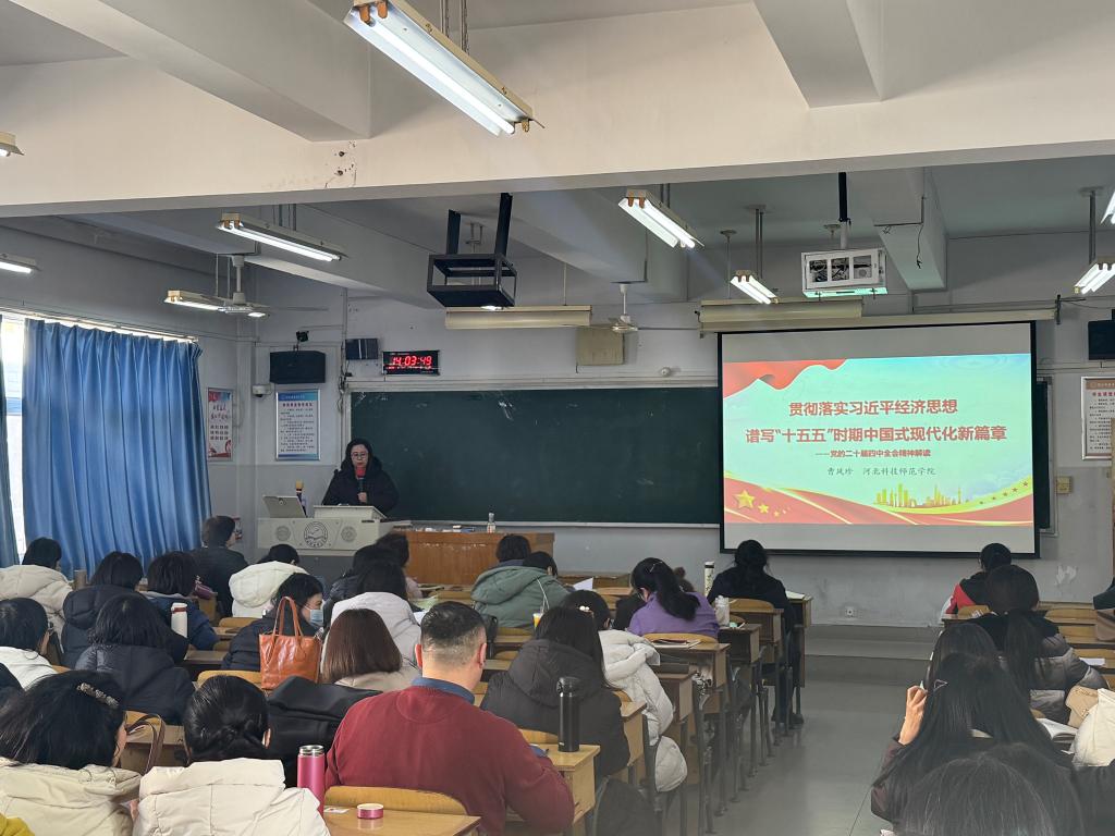 为深入学习贯彻党的二十届四中全会精神,精准把握“十五五”规划核心要义,12月25日下午,best365手机版官方网站特邀马克思主义学院曹凤珍博士,为全体教师作“贯彻落实习近平经济思想,谱写‘十五五’时期中国式现代化新篇章”专题宣讲。