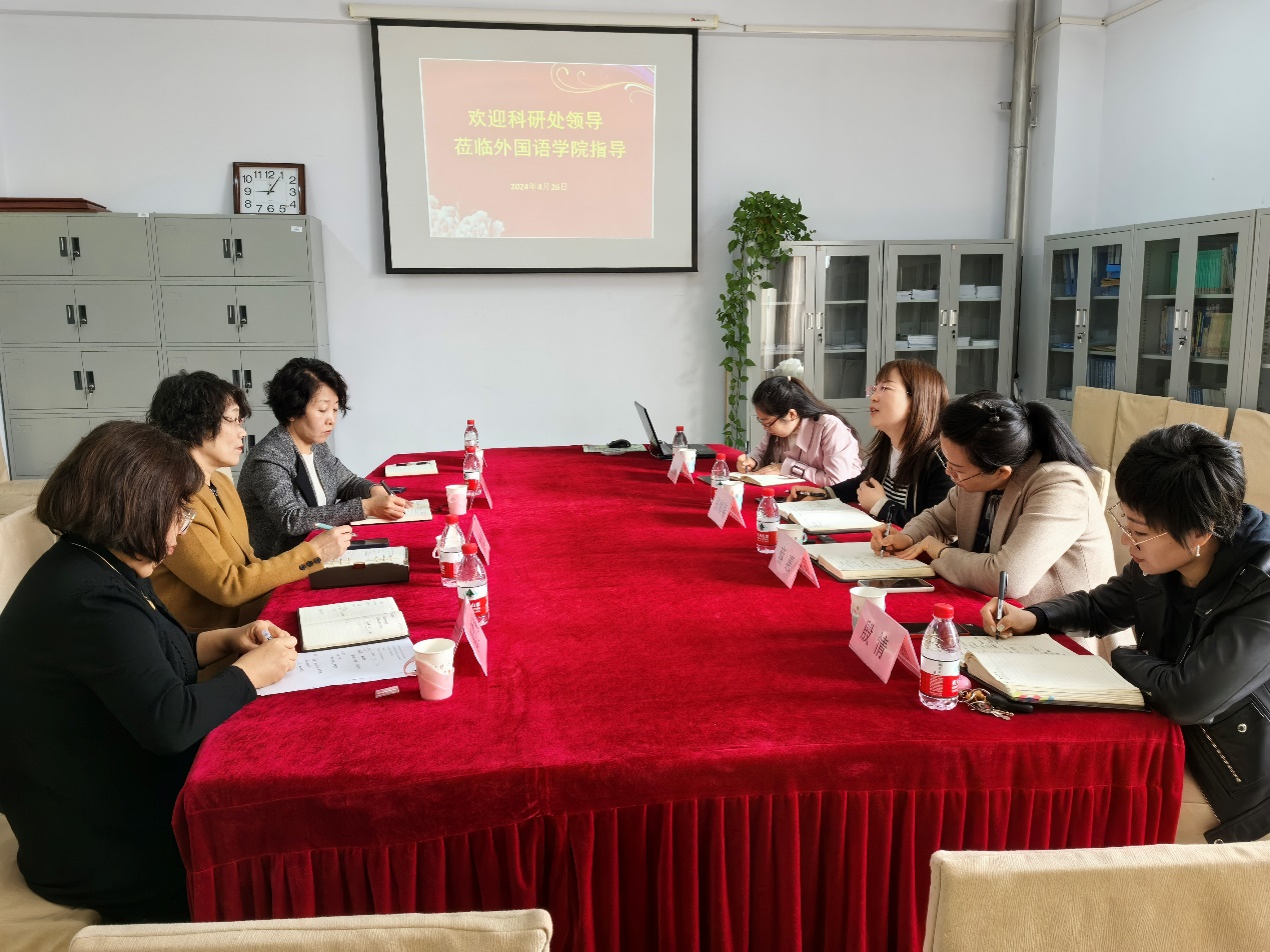 2024年4月26日上午,学校科研处处长张海华、副处长蔡惠、科长张娟和殷情四位同志莅临best365官网开展工作调研。best365官网党委书记范群英、院长崔海英、副院长范学荣及学科秘书刘洋洋出席座谈会。