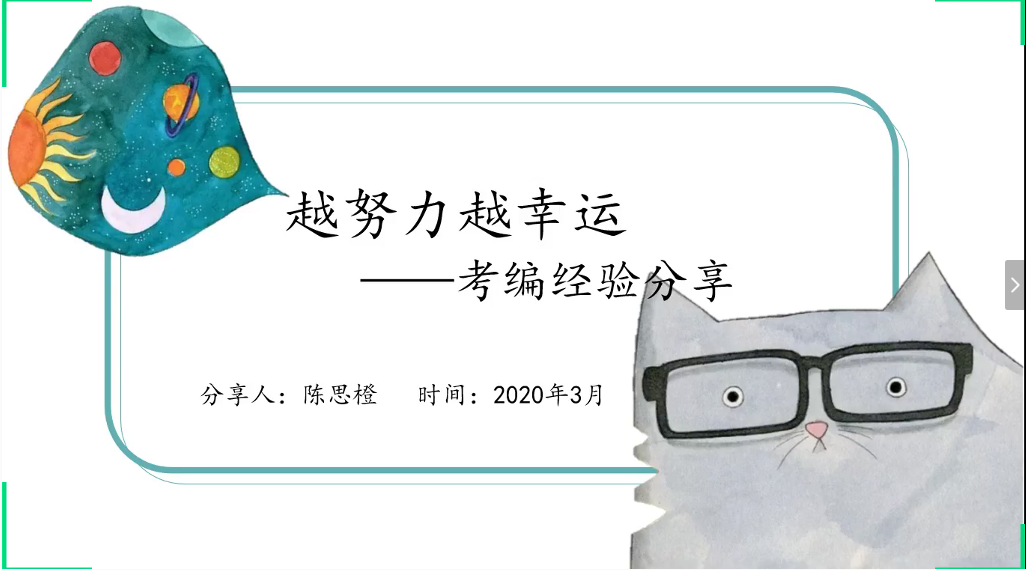 上一期精彩丰富的考编云分享为同学们的考编之路提供了极大助力,为了让同学们能做好更完备的考编准备,2020年3月25日19:00,德赢官网在腾讯会议上开展了第二期校友考编经验云分享活动,学工办主任刘纪峰老师、学工办辅导员李丹萍老师、两位优秀毕业生以及有考编意愿的同学们参加了此次活动。