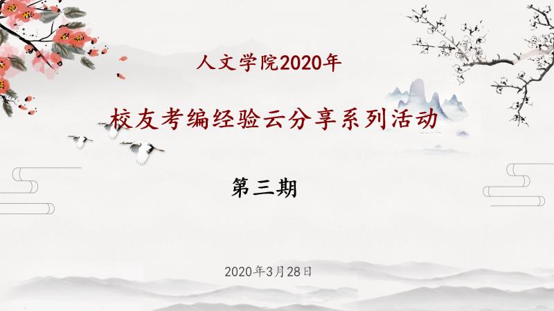 面对即将到来的六月毕业季,同学们都将应对就业的考验,为了给同学们提供更好的就业服务,德赢官网于2020年3月28日19:00举办了第三期校友考编经验云分享活动,由两位优秀毕业生向同学们分享考编经验。正如院学工办辅导员李丹萍老师在会议开始前所说的,同学们要怀着感恩之心,珍惜校友们带来的宝贵经验分享。