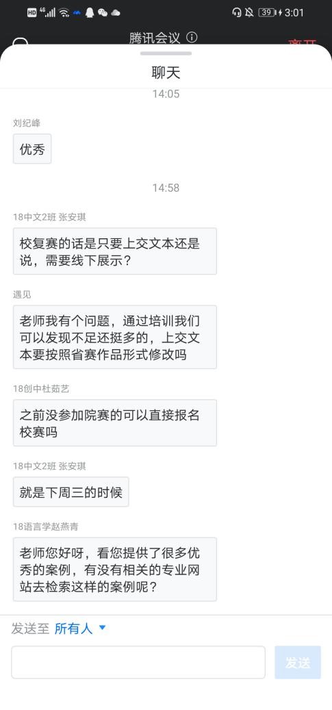 动员会最后,进行互动交流环节。通过本次赛前动员和培训,同学们对职规大赛的要求有了更明晰的认识。职规大赛的参赛者要有服务社会、服务大众的情怀,充分展现自己的优势,在撰写文本时,要保证语言的精炼和准确性,并不断打磨自己的作品。希望同学们可以抓住机会,积极参与职规大赛校赛!
