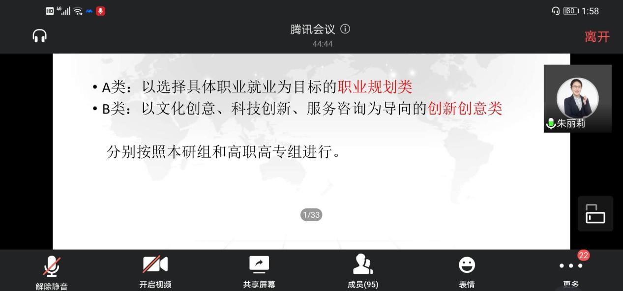 随后,德赢ac米兰官方合作vwin职业生涯发展与就业指导教研室主任朱丽莉老师从专业角度为同学们进行职规大赛赛前指导。她以德赢ac米兰官方合作vwin第十二届大学生职业生涯规划大赛的实施方案为例,为同学们介绍了大赛的相关信息,并结合近年来做评委的经历,鼓励同学们积极参与职规大赛。她认为,每一位同学在参加比赛的过程中都在成长,在不断触碰自己边界的过程中,开拓视野,对自我有更深刻的认识,还能锻炼自己的综合性能力。同时,朱丽莉老师针对大赛的奖项设置、大赛分类、时间安排和决赛要求等四个方面介绍了大赛的情况。在职业规划类的文本撰写方面,朱老师以获奖同学的作品为例,对封面的设计、前言的撰写、个人基本信息的介绍以及目录的设计等方面提出建议,她认为选择的目标职业要是自己真正热爱并有所尝试的。关于创新创业类文本的撰写,朱老师针对项目背景、市场介绍,包括市场情况、市场容量、竞争情况以及未来的发展趋势等方面进行了相关指导。