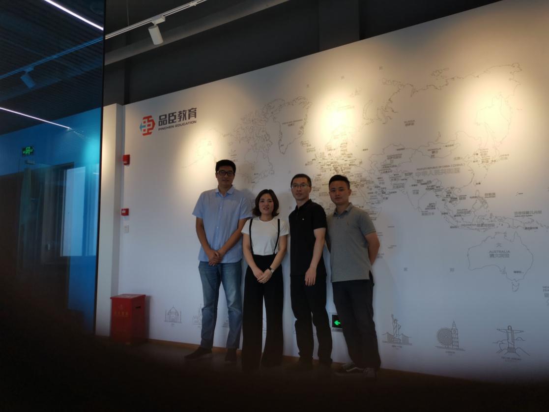 为加强校企合作,拓宽毕业生就业渠道,了解就业市场需求,7月14日上午,德赢ac米兰官方合作vwin党委副书记魏一、学工办主任刘纪峰和辅导员申业磊一行来到浙江品臣教育科技有限公司瑞安校区进行走访调研,受到了浙江品臣教育科技有限公司瑞安校区陈校长的热情接待。