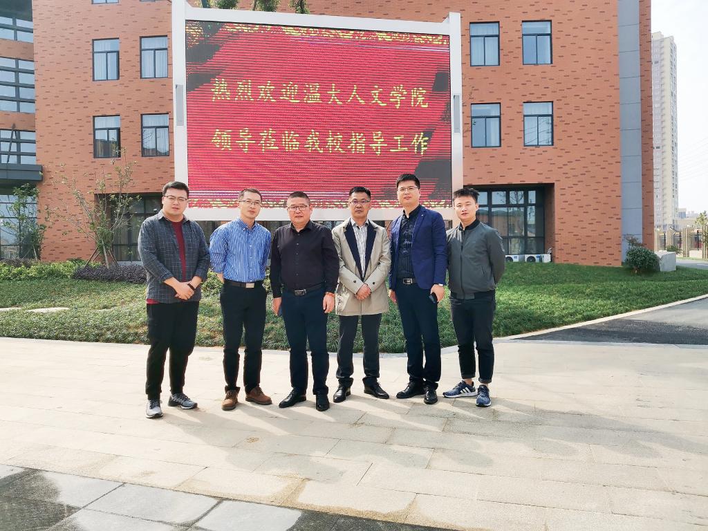 为加强校企合作,拓宽毕业生就业渠道,了解就业市场需求,加强学院与社会的联系、促进学院与校友更好合作,共同发展。11月3日上午,德赢官网党委副书记魏一、历史系学科带头人刘建国教授以及辅导员胡震鹏、申业磊一行来到平阳县万全教育集团拜访董事长即德赢官网杰出校友陈孝杰。