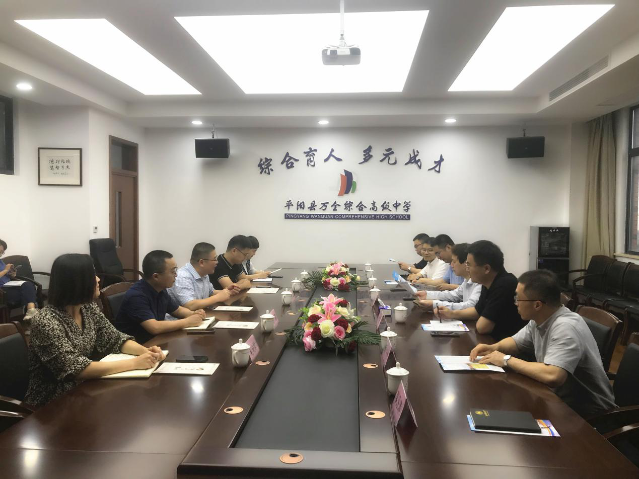 为加强学院与校友单位的交流合作,助力毕业生更加充分更高质量就业,6月2日下午,德赢ac米兰官方合作vwin党委委员、纪委书记杨林书,德赢ac米兰官方合作vwin院长孙良好、党委书记江秀景、副院长郑春生、党委副书记魏一、院长助理张真、辅导员李丹萍一行7人走访平阳万全综合高级中学,开展访企拓岗促就业活动。