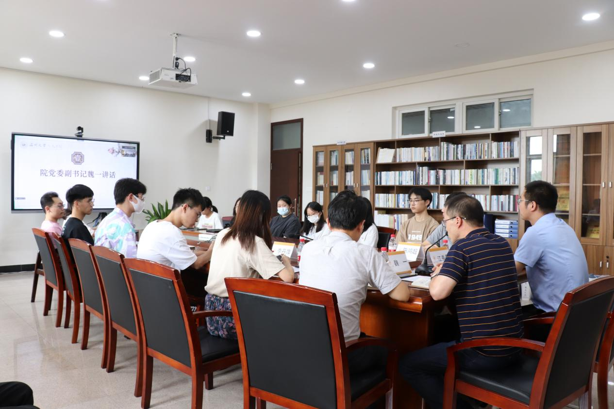 院党委副书记魏一围绕“信念、奋斗、执着”三个关键词鼓励同学们积极备考,信念指身体力行的态度,奋斗指为达目标而努力干的过程,执着指对某一事物的坚持不懈。他建议同学们坚持锻炼、调整状态并祝愿同学们如愿以偿。