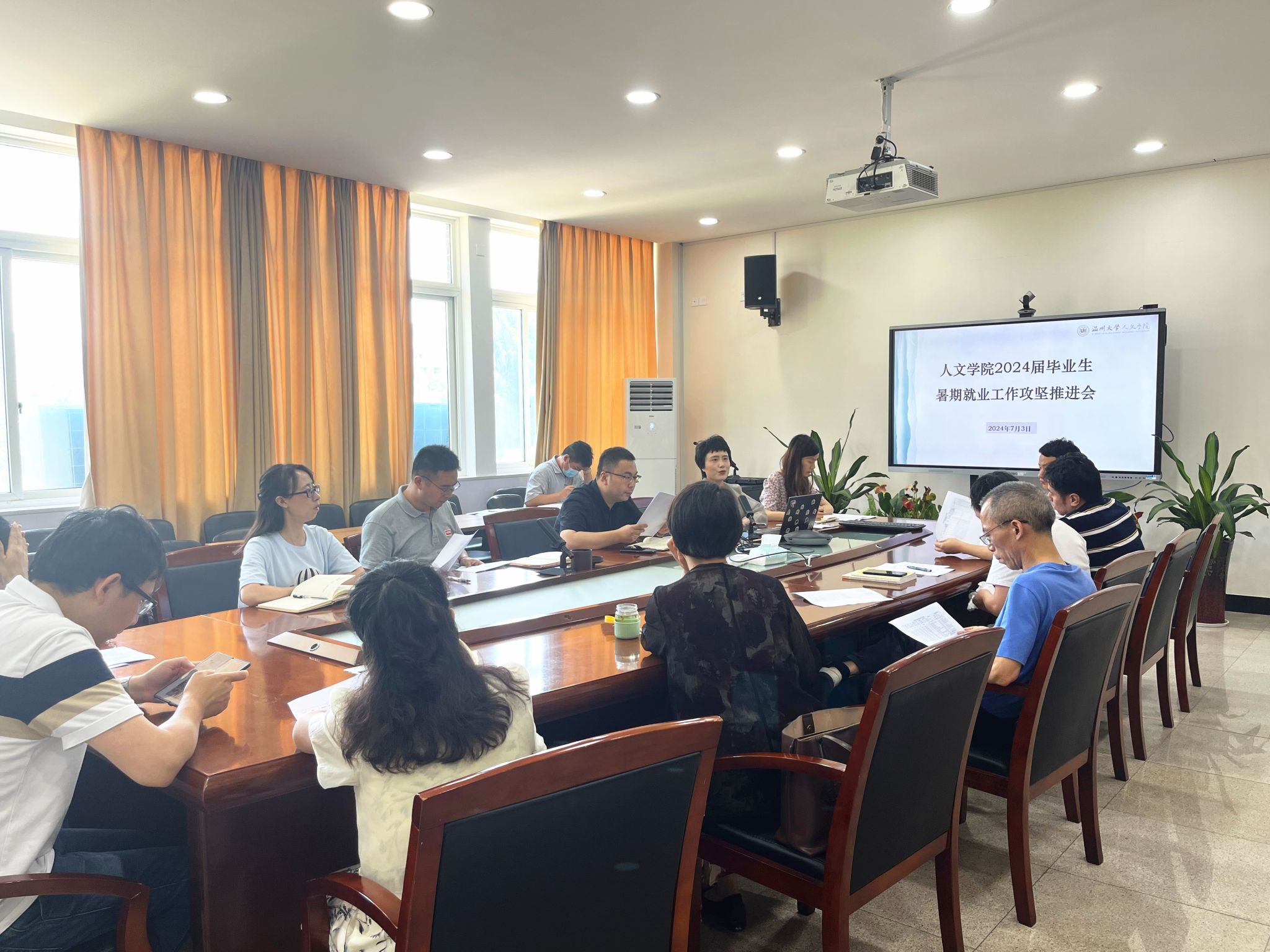 为进一步推动学院2024届毕业生就业工作,促进毕业生更高质量更加充分就业,7月3日下午,德赢官网在人文楼213会议室召开了2024届毕业生暑期就业工作攻坚推进会,此次会议旨在深入贯彻落实教育部、省教育厅及学校关于高校毕业生就业工作的会议精神,抢抓就业冲刺期,明确后续工作重点,凝聚全院力量,共谋就业新篇章。学院领导班子全体成员、各专业系主任、硕士点负责人、毕业班班主任、学工办辅导员出席会议。会议由院党委副书记黄玮主持。