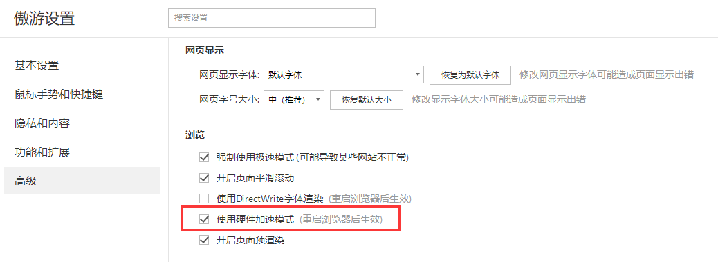三、遨游浏览器开启硬件加速方法