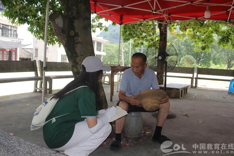 实践队以上门访谈的方式深入农户家中、个体商户、学校等地开展调研工作。在调研途中实践队员们注意到一棵参天大树,巨大的树冠为村民投下大片阴凉,这棵树就是“状元手植樟”。当地许多村民正在树下乘凉、唠家常,看见队员们走过来,都纷纷投来好奇的目光,在得知队员们的来意后,村民们亲切地用夹杂着方言的普通话与队员们交谈。有几位老伯说着说着,便自豪地讲起在外工作的孩子,他们说家庭有现在的生活条件,离不开普通话的普及,也衷心地感谢国家对普通话的大力支持。