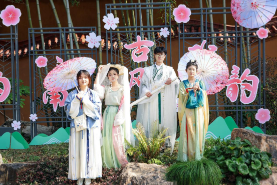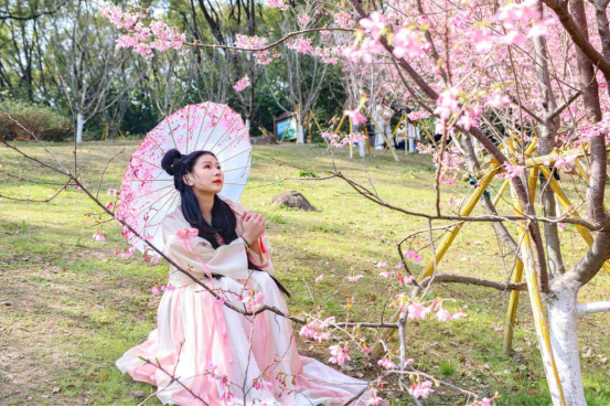 汉服爱好者身着精美服饰穿梭于樱花树下,既展现出汉服之美,也体现了对传统文化的传承与创新,吸引众多游客驻足,享受一段充满诗意的赏樱时光。