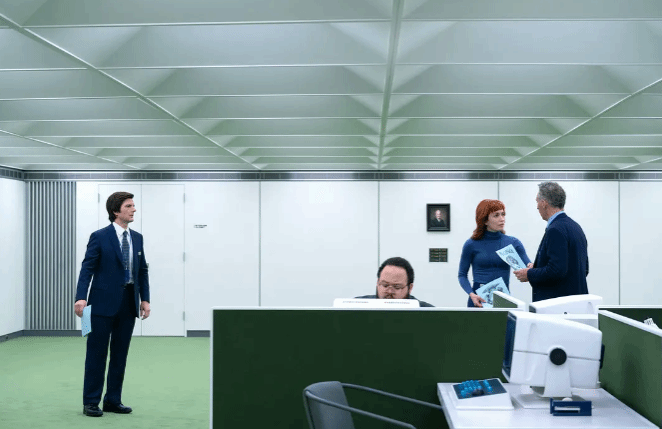 “切割术”以机械、冰凉的手术方式客观而又细腻地呈现了现代世界中的“过度积极性”,使得其“轰动一时”。“工作人格”的启用使得员工丧失对自我身份和行为的反思能力,员工交出“自由”以换取对“工作中的压抑与痛苦”的遗忘,这何尝不是现代世界人们自我麻痹的隐喻?过度忙碌、消费主义又或是内耗和抑郁,不过是以自我麻醉逃避对异化劳动的反思。卢蒙公司设定的“华夫饼派对”和“休息室忏悔”作为奖惩机制,制造了虚假的“自愿服从”,员工被迫歌颂“工作即正义”,却让员工困在“数据分类”的无意义工作之中。“切割术”还阉割了员工对工作痛苦的感知能力,他们永远积极,永远热爱工作,这恰恰是现代职场中“标准职场人格”的展示——没有愤怒和悲伤,只有永远的向上和动力。