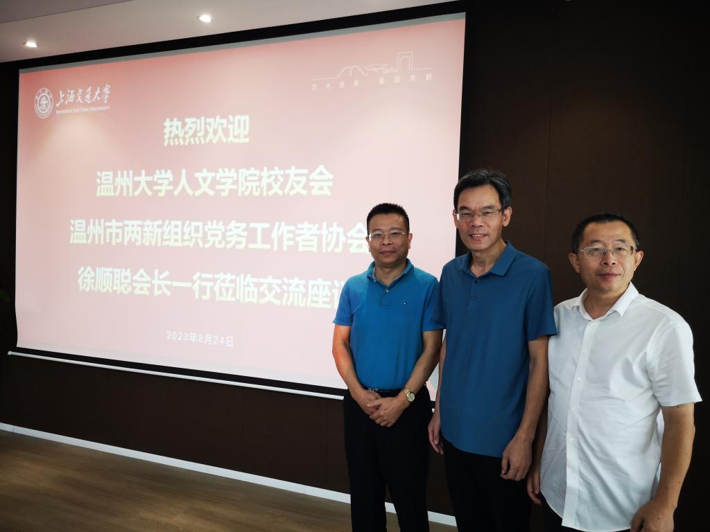 在上海,徐会长一行分别走进了上海交大媒体与传播学院和德赢ac米兰官方合作vwin上海校友会会客厅,受到温大上海校友会会长、上海市乐清商会会长高天乐、上海交通大学媒体与传播学院副院长李康化、上海校友会副会长兼秘书长陈康汉等校友的欢迎和热情接待。