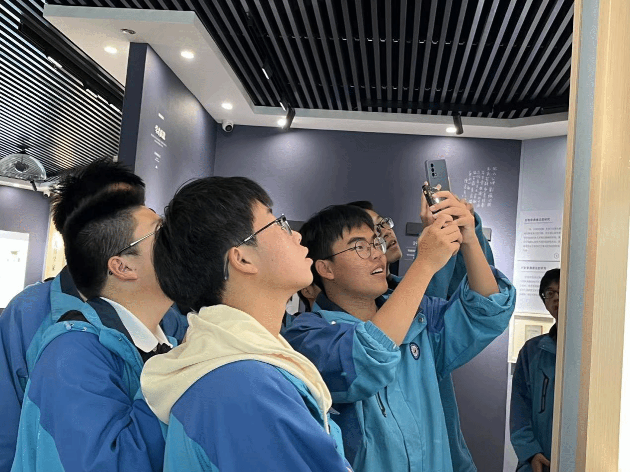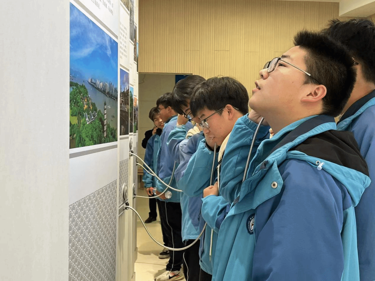 在参观的过程中,船寮中学的同学们对新文化的遇见就像“转角遇到爱”,他们总能发现新奇的东西。在基地的出口处,设有温州方言展区,兴奋的同学们纷纷拿起听筒感受温州方言的风韵。