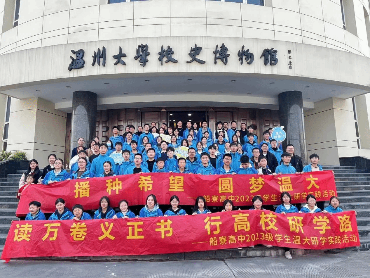 2024年1月13日,在校友02历史本科班郑志斌老师的带领下,青田县船寮高级中学高一、高二学子来温大开展“播种希望,梦圆温大”为主题的研学实践活动,通过“文化行、接力行、历史行、未来行”四大项目,让60多名高中学生、20余名家长走进温大,沉浸式感受温大的活力与氛围,与温大展开深度交流、建立深度连接。