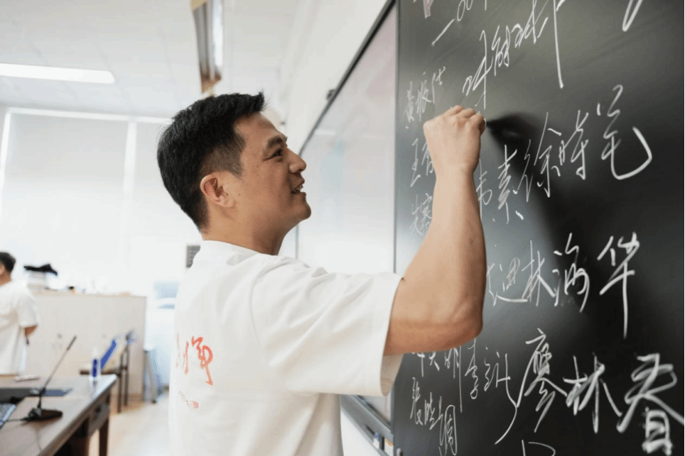 通过视频回溯了当年青春岁月之后,校友们按照曾经的学号依次上台,在20秒的时间内,向老师汇报自己的语文素养基本功,在黑板上一笔一划地写下自己的姓名,一句话介绍自己毕业后的工作经历,大家完美展现了自己扎实的师范技能及课堂把握的能力,老师们纷纷点头微笑以表赞许。
