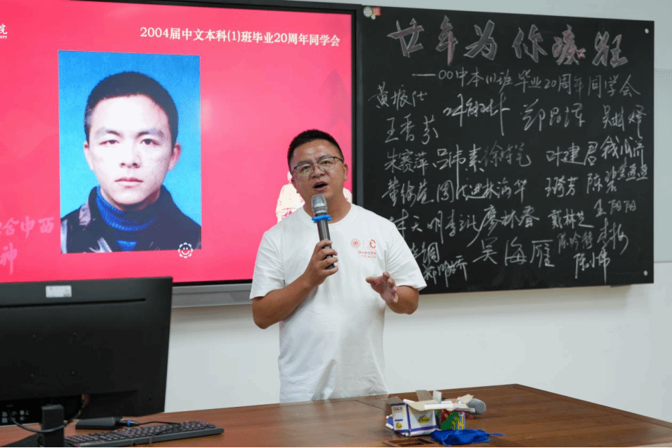 主题班会精心设置了重温课堂环节,骆锤炼老师为同学们献上了饱含深情的《当时我们选择了这座城市》;俞磊老师分享了自己多年的写作教学体会与经验;金理新老师殷殷叮嘱大家要注重阶段和过程;蔡贻象老师从同学们身着的文化衫上的标语“狂飚廿年”切入,结合影视,为大家呈现了这20年的变与不变;林维民老师的诗歌课堂,深入浅出,看似刻板的经典名篇在他口中又生动鲜活了起来,同学们不约而同高诵《关雎》。书声朗朗,笑语晏晏,二十年后重温老师的课堂,那些青葱岁月的读书时光,不禁在大家的脑海里一一浮现。