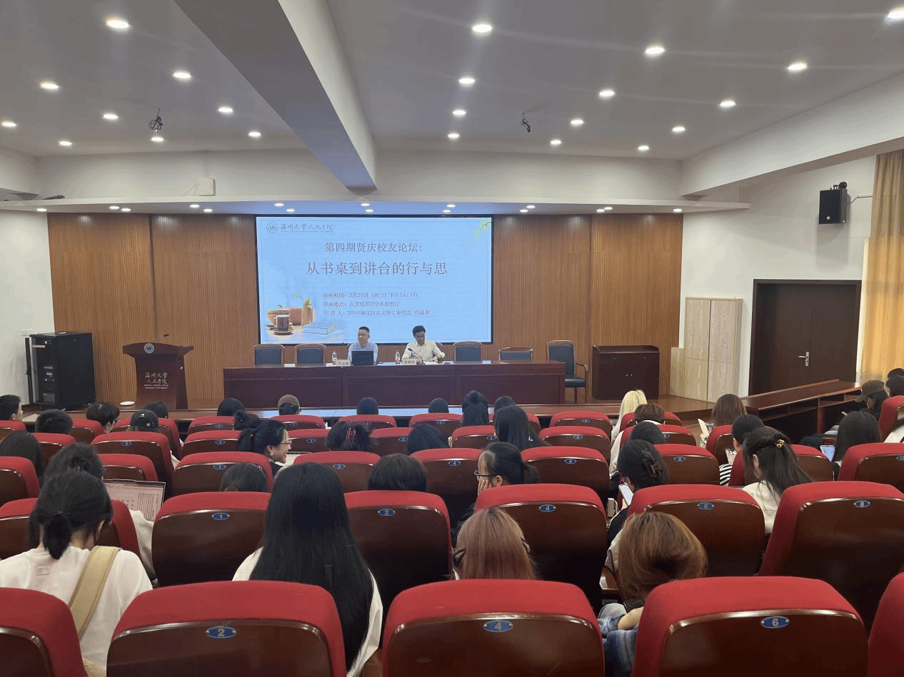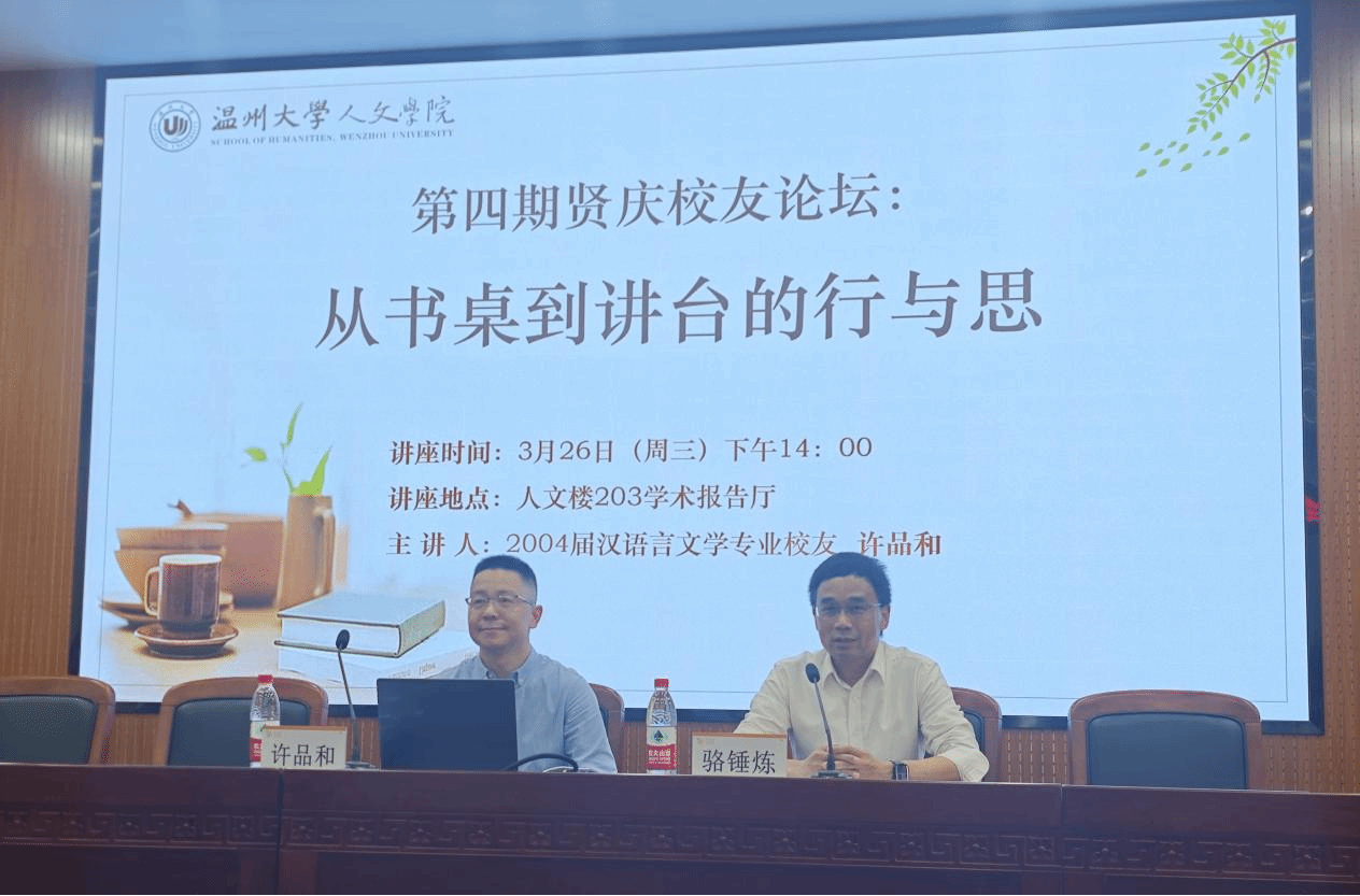 2025年3月26日下午,2004届汉语言文学专业校友许品和在人文楼203学术报告厅为德赢官网学生带来了“从书桌到讲台的行与思”主题讲座。本次讲座由骆锤炼老师主持,100余位学生积极参与。